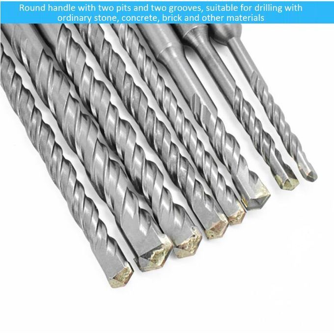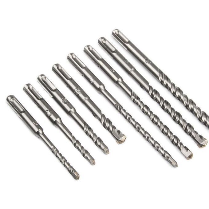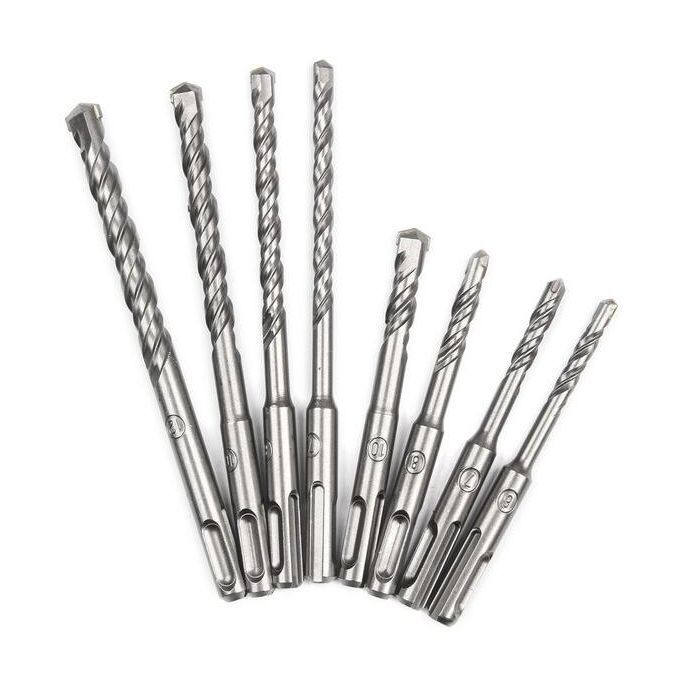 8pcs 2 Pits 2 Slots SDS Shank YG8 Carbide Masonry Drills Rotary Hammer Impact Drill Bits Set for Drilling Concrete Brick Tile