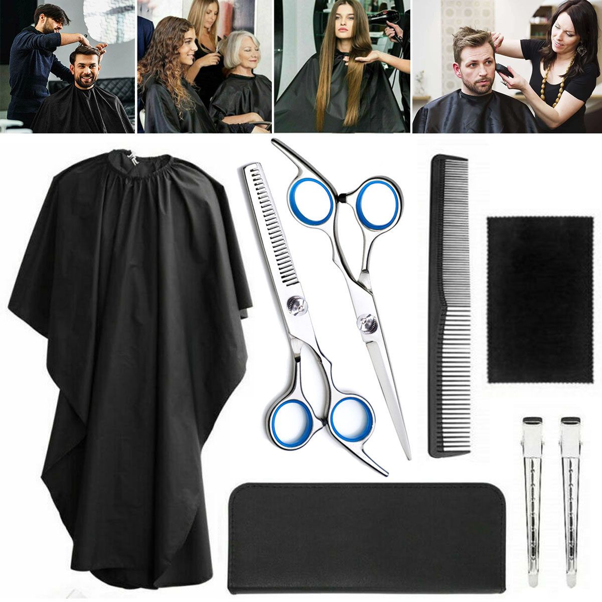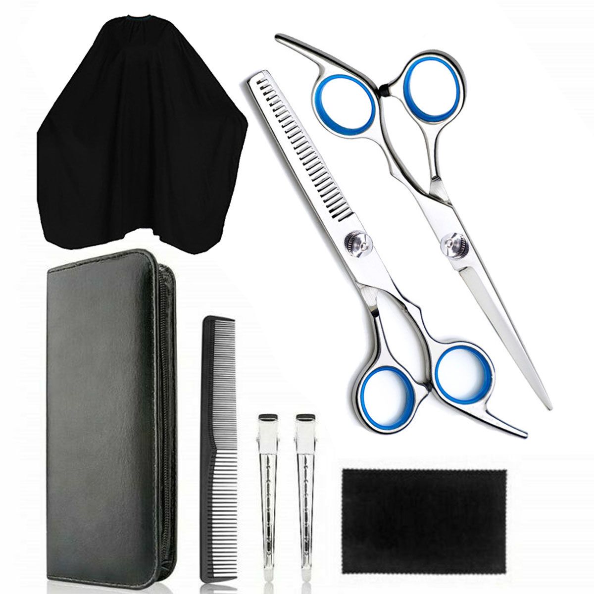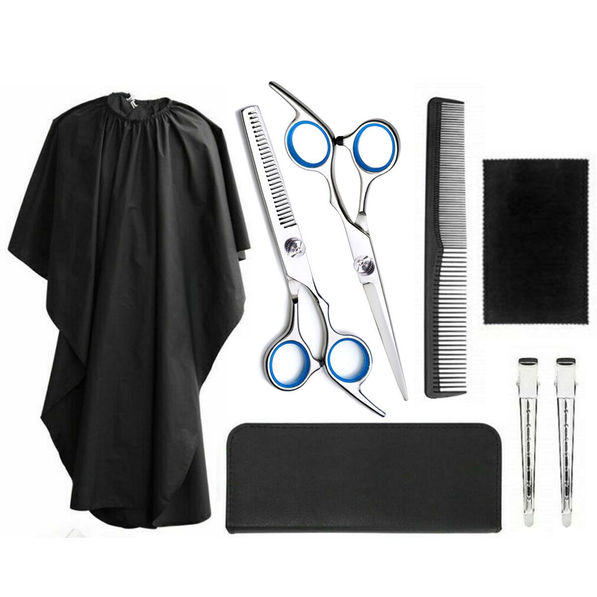 8 Pieces Hair Tool Set Hairdressing Scissors Clips Comb Cape