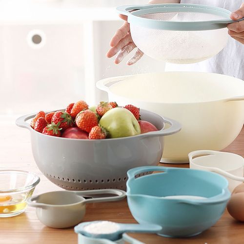 1X 8Pcs/Set Mixing Bowls BPA Free Nesting&Stackable Bowls Set Including Measuring Cups Colander Sifter Large Bowls Knead Dough Tool