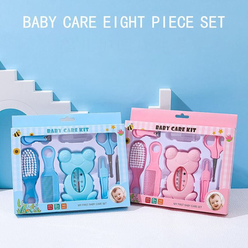 C---8 PCS Include: scissors, baby brush, baby comb, nail file, nail clippers, Water temperature gauge, tweezers, Finger cover toothbrush.
