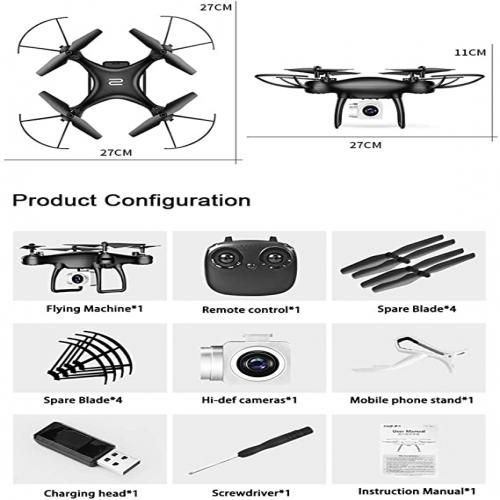 Specifications: Color: Black / Red / White Material: ABS + electronic components Aircraft expansion size: 28cm x 28cm x 11cm Remote control size: 17 * 14.5 * 6.5CM Camera size: length 4.7CM width 4.2CM height 3.5CM Channel: 4 channels Maximum flight height: 30 meters (including) Flight time: 10 minutes Aircraft charging time: 45 minutes Input voltage: DC 5V 1-2A Body battery capacity: 3.7V 400mAh lithium battery (built-in) Frequency: 2.4GHZ Number of remote batteries / model: 4 x AA batteries (not included) Remote distance: about 30 meters Camera: 2MP Video resolution: 1280 * 720/640 * 480 (can choose 720P / VAG mode via APP) Photo resolution: 1280 * 720/640 * 480 Shooting angle: Wide angle 90 ° Video encoding: MJPG Frame rate: 20fps Video format: AVI Image format: JPEG Support: Scan the QR code to download APP to watch in iOS or Android phones. Features: Fly up or down / turn left or right / fly forward or backward / fly left / fly right / camera / video / one key to take off / one key landing / one key to return / headless mode / emergency landing / pressure set height / ESC /
