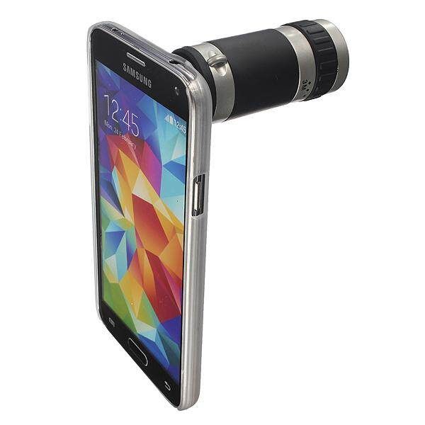 ? Features: 1.100% and high quality 2.Overcome the short coming of cell-phone camera that can near-sighted,it also makes distant view for you. 3.The new design to run of rays can effectively avoid the contortion of image,and 4.makes the super wide angle,the larger luminous flux,the higher visual acuteness,good ?for reduction,which makes the high quality of photography. 5.Magnifcation:8x 6.Field: 9 degree 7.Compatible with: Samsung Galaxy S5 S V i9600 8.The cellphone ?is not included. ? Usage: Change the cell phone back shell first enclosed with the Adjust the clear focus with you naked eye It can take photos while fixing the on back?