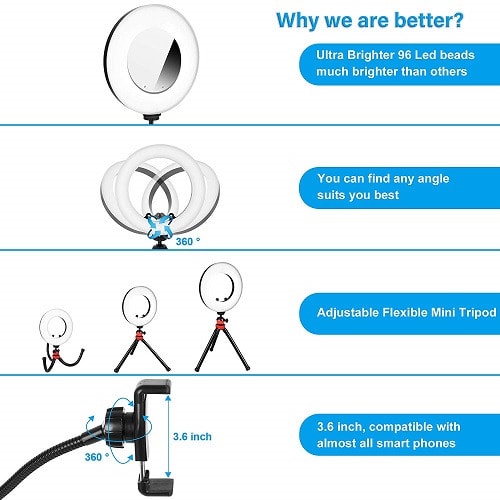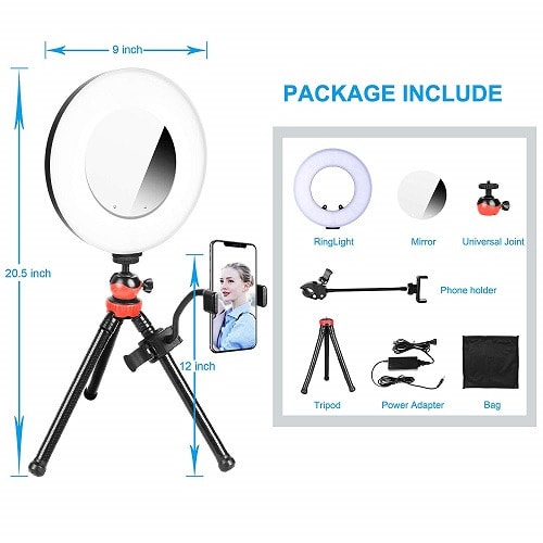 Buy 9 inches LED Ring Light With Tabletop Tripod + Phone Holder & Mirror in Nigeria