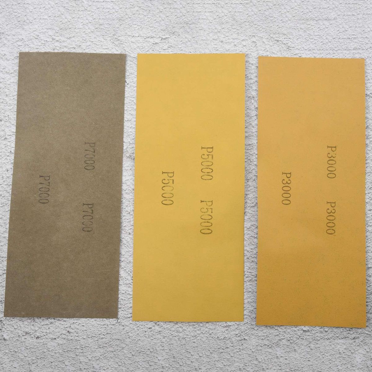 NICE RANGE OF GRIT:high grit sandpaper assortment set contains 3 different grit sand paper: 3000, 5000 and 7000 grit. Each grit has 3 Pack. Totally 9 pcs sandpaper for your daily using