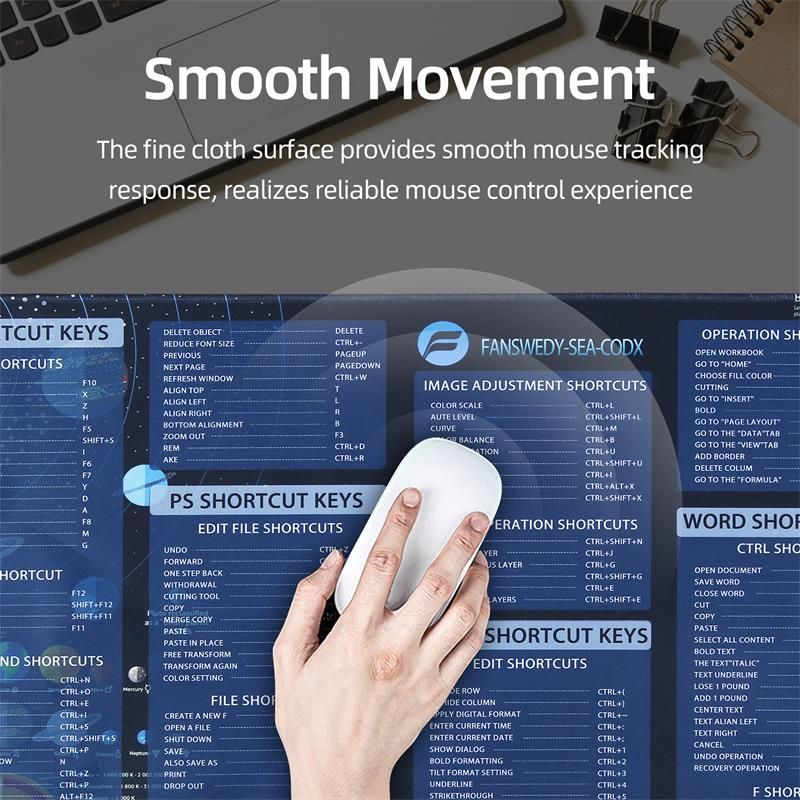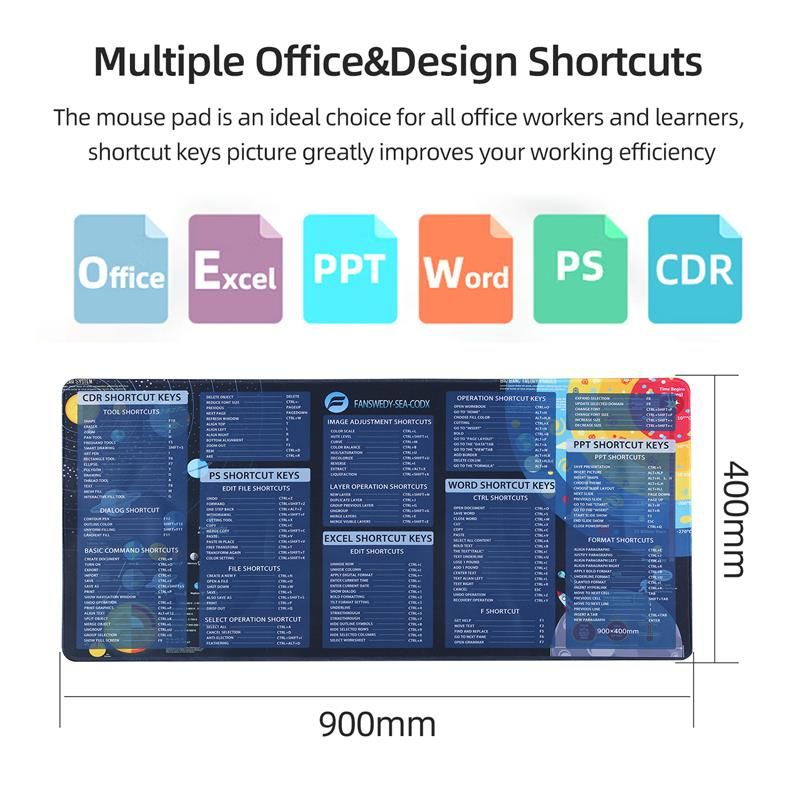 - The mouse pad is an ideal choice for all office workers and learners, shortcut keys picture greatly improves your working efficiency.
