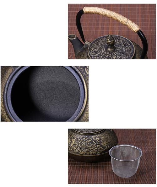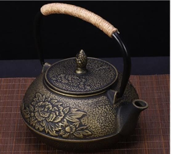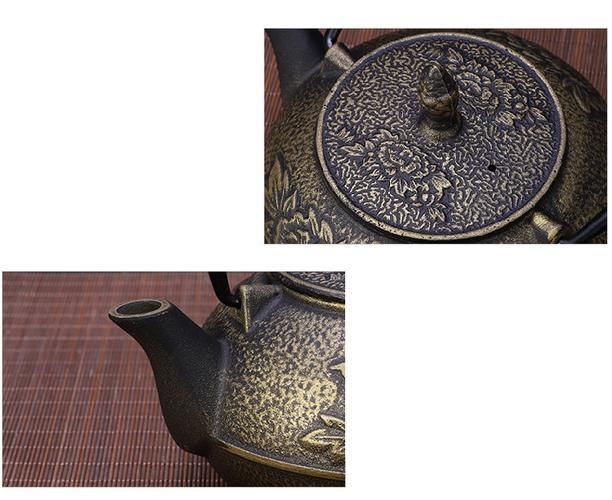 900ML Cast Iron Teapot Set Japanese Tea Pot Kettle Enamel Kung Fu Infusers Metal With Strainer Net Filter-Teapots(Peony)