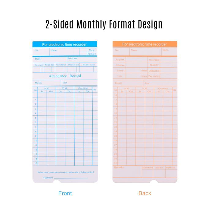18.5 x 8.5cm time clock cards for tracking your employees' attendance records, about 90pcs/ pack.