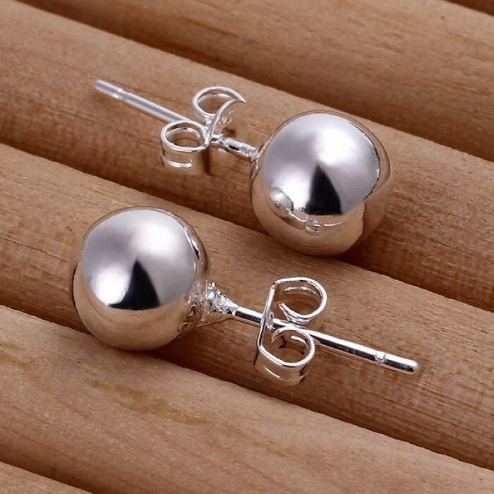 Buy 925Silver color cute hot women lady nice wedding fashion 8mm beads earrings Simple stud silver earrings ,E073 in Nigeria