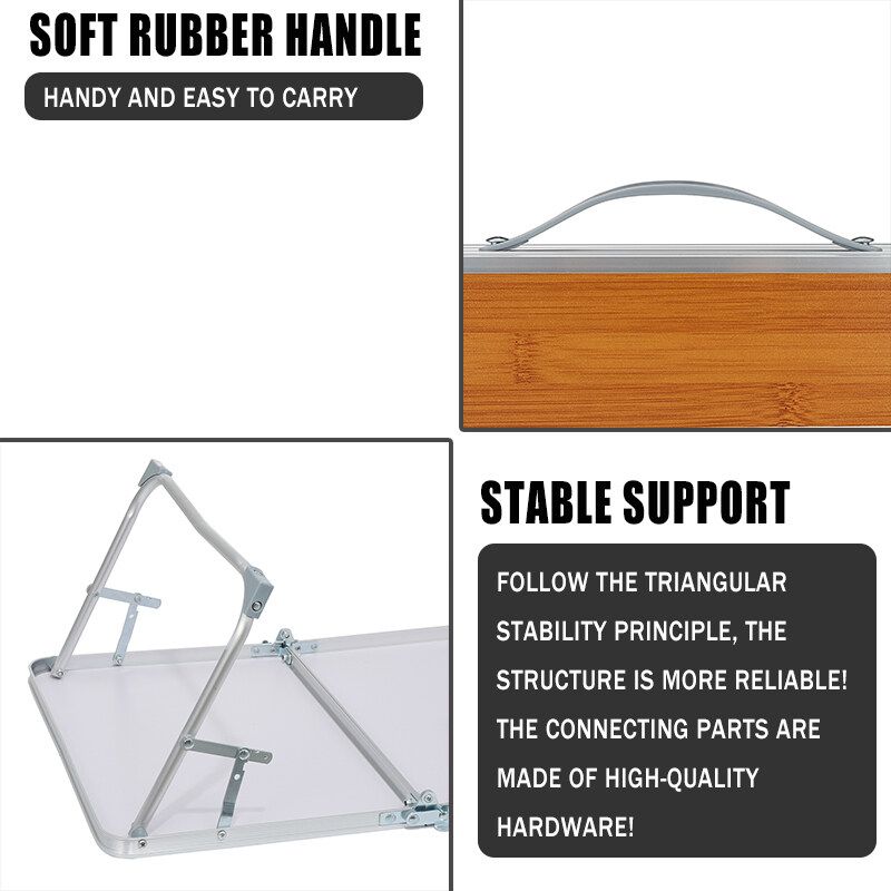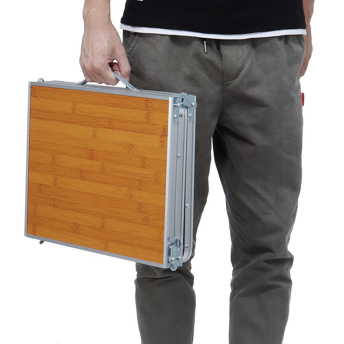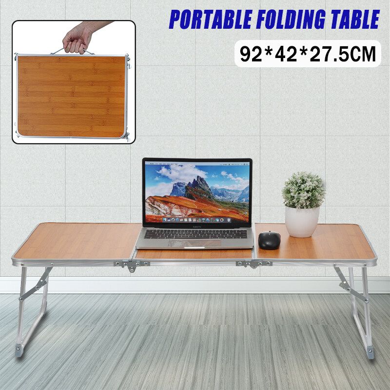 92x42x28cm Portable Folding Outdoors Table Easy To Carry Aluminium Alloy Wooden Foldable Laptop Computer Desk Lazy Bed for Outdoor Camping Picnic BBQ