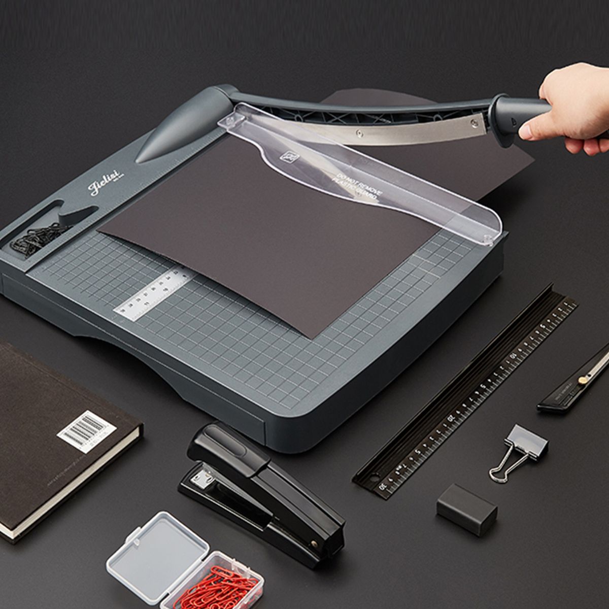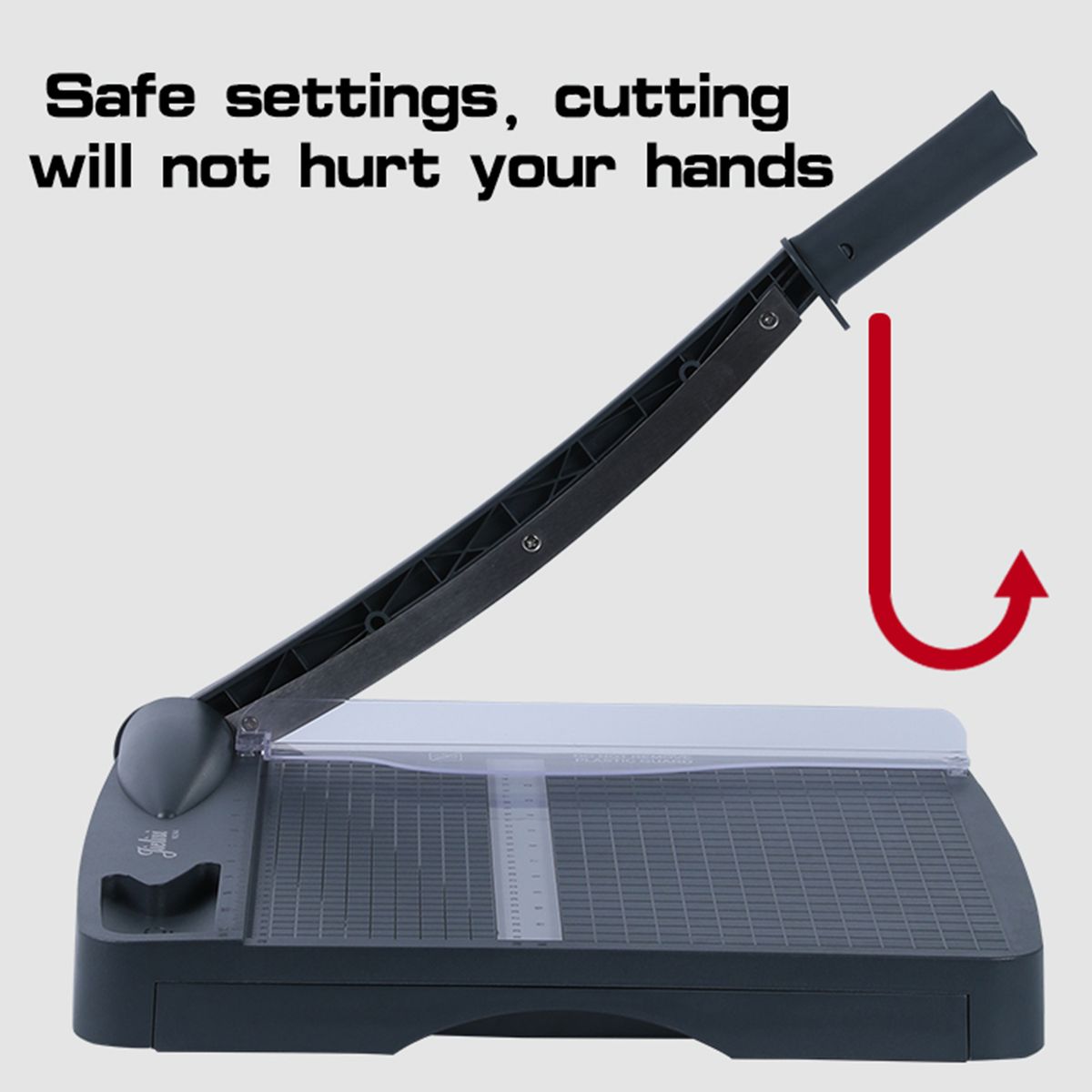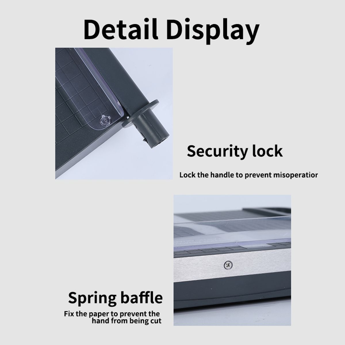 Accurate And Safe: Security lock design can lock the handle to prevent misoperation,and spring baffle can fix the paper,you don't need to worry about finger cuts with scale display help better arrange the paper.Centimeter and inch double use,upper grid inches,and lower grid cm.In addition to the normal scale on the panel, an additional silver scale line is added to enhance the overall use experience and visual texture of the product.