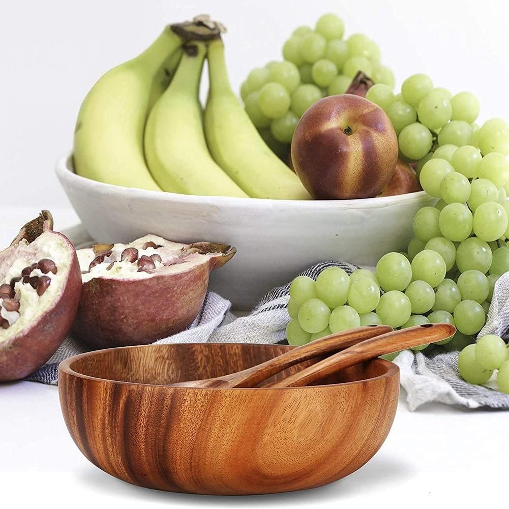 Made from natural acacia wood, this wooden bowl is healthy, environmentally friendly, practical and durable in use