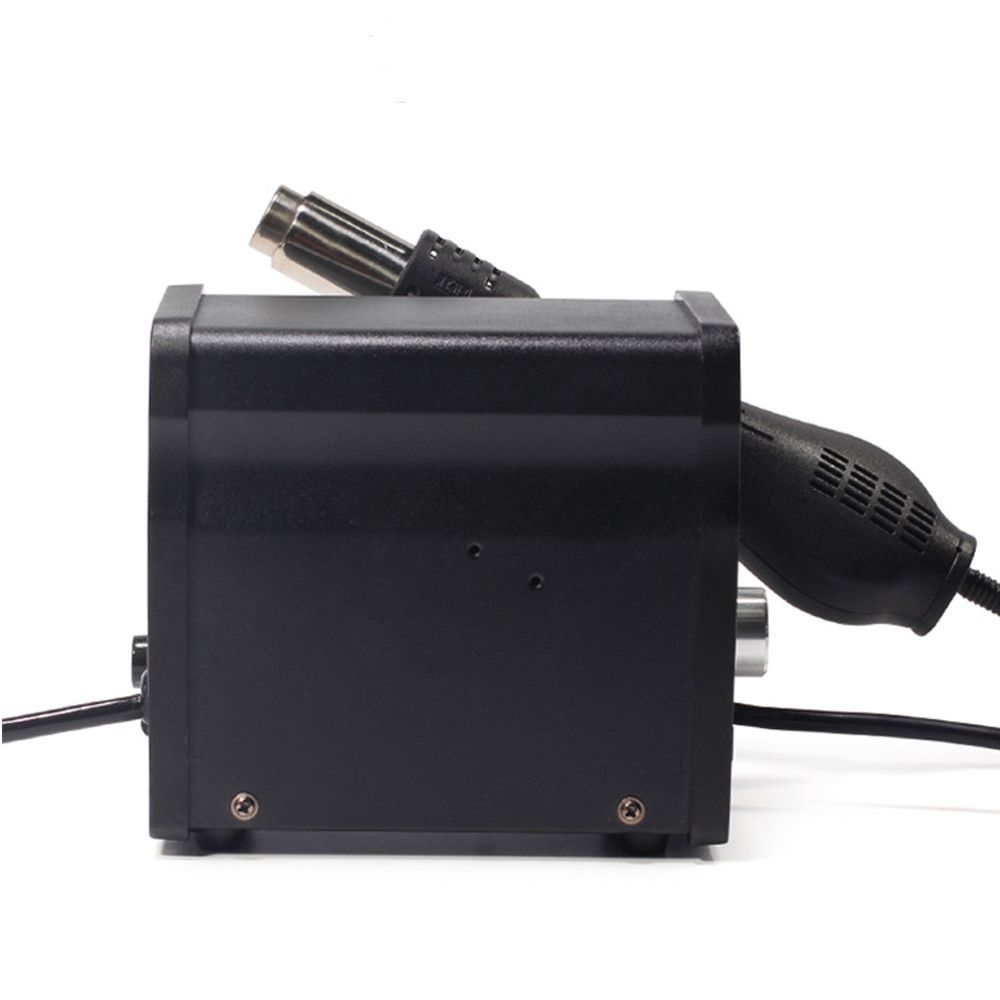 Features:r closed loop,microcomputer zero trier temperature control,rapid heating,precise and stable of temperature,avoid air volume impact.Gas flow steple adjustable,wide rage;digital temperature display,temperature easy to adjust,it can adapt to a variety of uses.The handle is equipped with sensitive magnetron r,when pick up the handle,the system quikly enter the working mode;put the hot air tool handle on the handle holder,the handle holder,the system will enter standby mide,real-time operating convenience.The system with automatic cold function,prolong heating element life.Small body,occupy small countertops.The shell is made of aluminum alloy material,beautiful and durable.Suitable for a various kind of soldering desoldering(removals)purposes of the electronic components such as:SOIC,,QFP,PLCC,BGA,SMD,etc.(Especially mobile phone's cable).Shrinking,paint drying,adhesive removal,thawing,warming,plastic welding.Specifications:Power comsumption:≤650WAirflow type:Brushle fan gentle windAirflow:120L/min(Maximum)Temperature range:100~500oCDisplay type:LED display(resolution of 1oC)The handle aembly length(including the handle line):120cmSize:L150xW00xH135mm±5mmNoise:<45dBWork Envment:0~40oCStorage Envment:-20~80oCStorage humidity:35%-45%Package included:1x set of Hot Air Tool