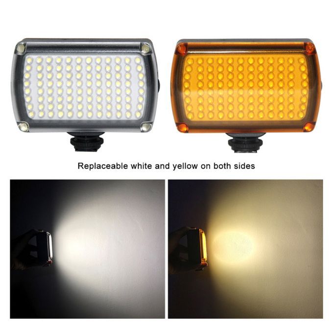 Wide-angle, 1200 lumens max, 5500K 96 LEDs, dimmable lighting mode.