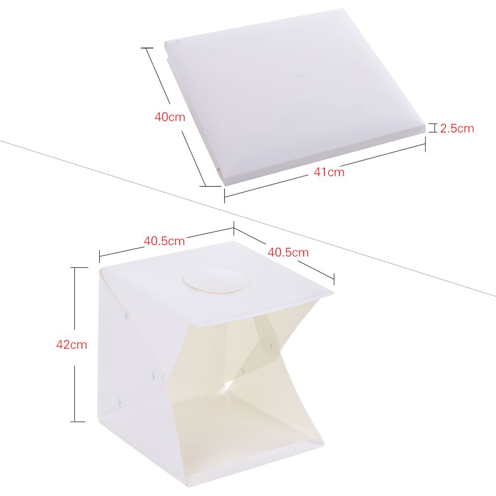 Foldable light box studio for smartphone or DSLR, convenient for you to carry about. It adopts ultra hard plastic and three buttons on each size, which can keep the large box away from sinking. Fixed LED beads give out bright, even and soft light for professional photography. Comes with White/Black/Red/Green 4 colors backdrops. Can be assemble in few seconds!