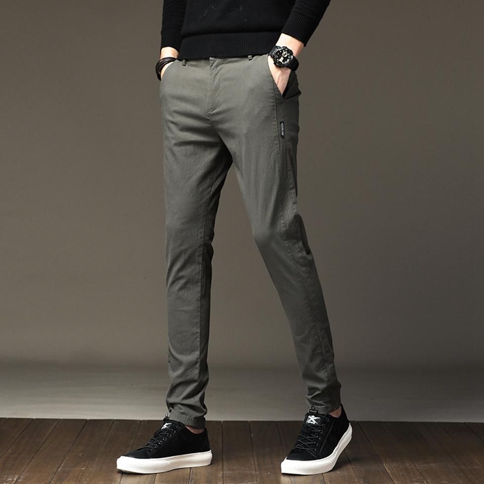 98% algodon 2% Spandex Anti-pilling pantalones de hombre Primavera Verano otono verde ajustada Hombre completa longitud Chino hombres pantalones de lapiz