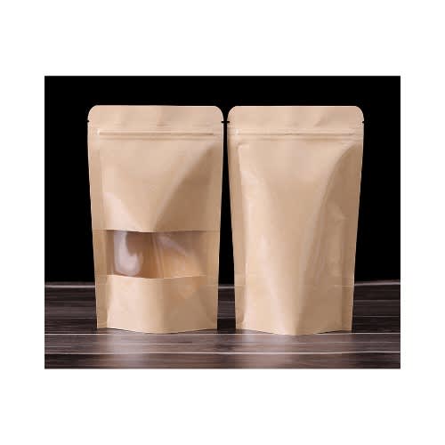 Buy 9cm×14cm Brown Kraft Paper Zip Lock Packaging Pouches With Transparent Window 50pcs in Nigeria