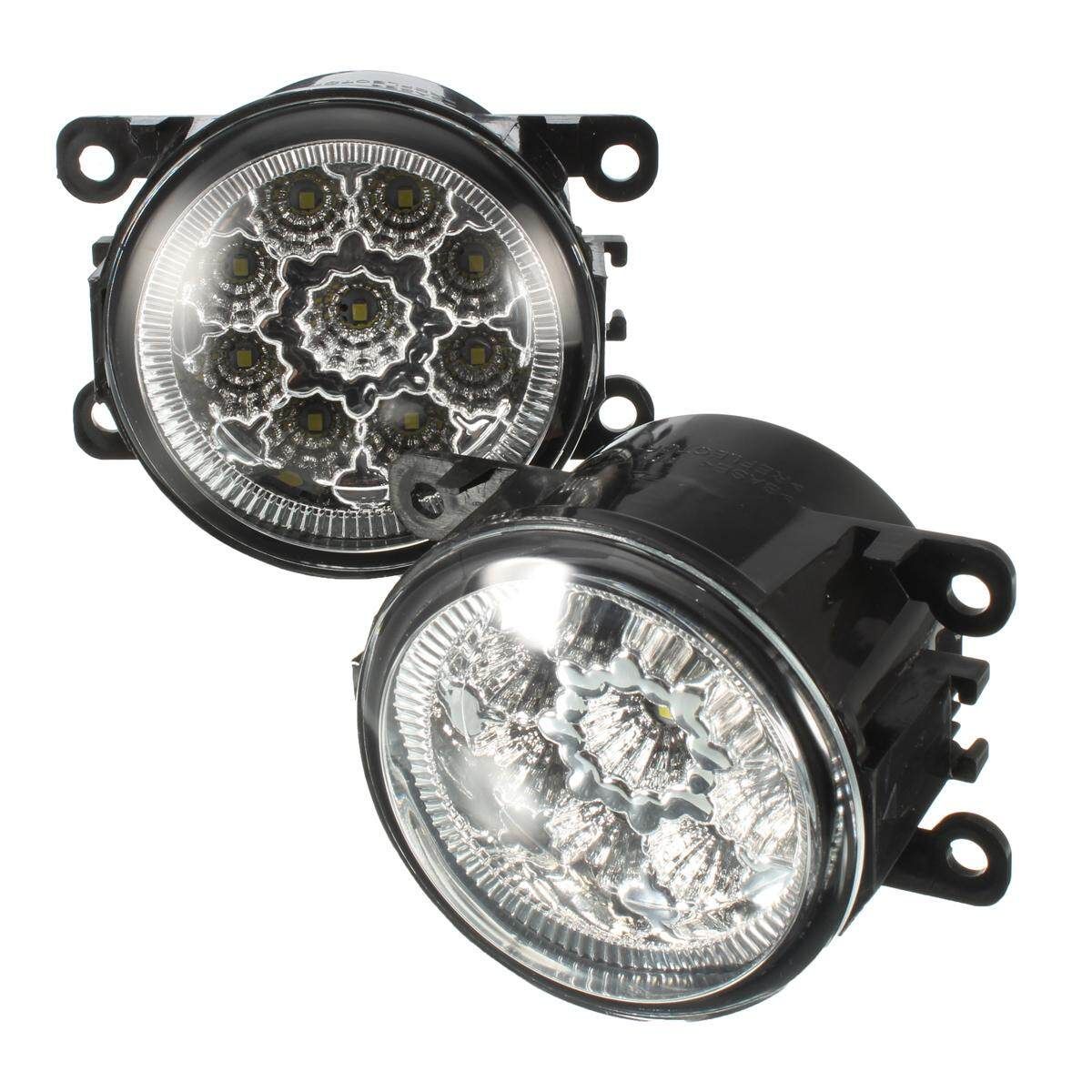 2Pcs Front Fog Lamp Round Running Light Daytime 9 LED For Ford Focus Honda Subaru