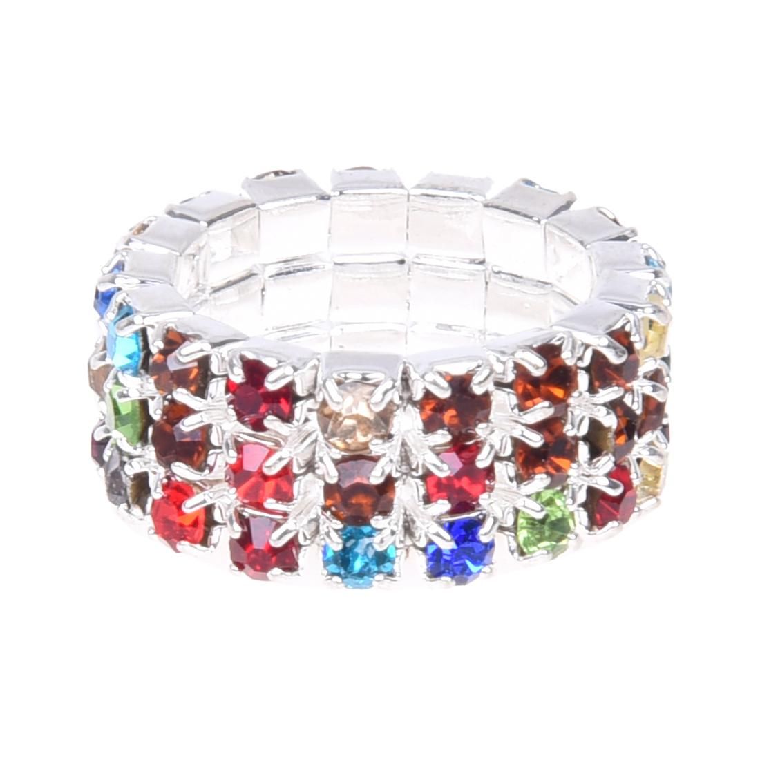Stretchy ring with 3 rows of rhinestone around it