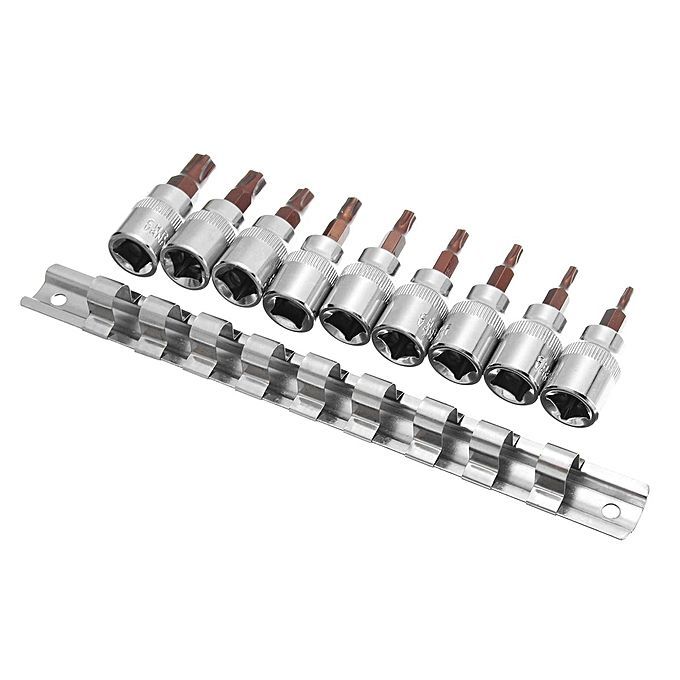 What In the Box1 x T10-T50 Drive Socket Bit Set (9Pcs) 1 x Socket Retaining Rail