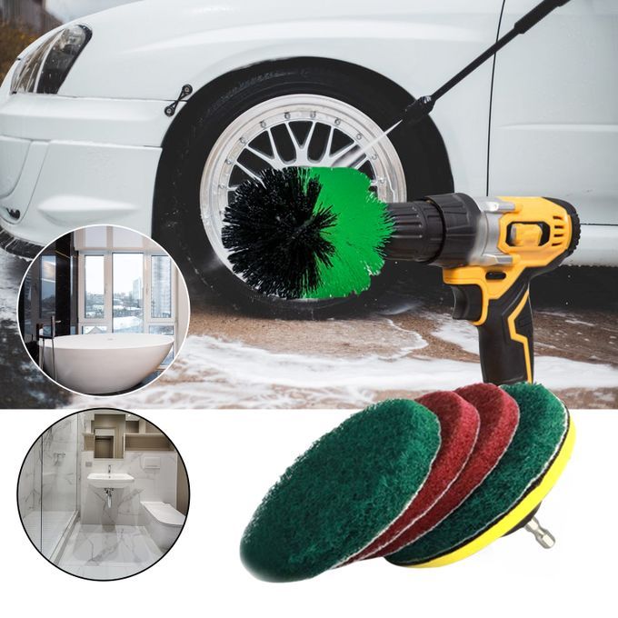 3 different brushes, 4 scrub pads, 1 corresponding scrubber connector and a 6" extend long attachment which can easily clean the hard-to-reach areas.