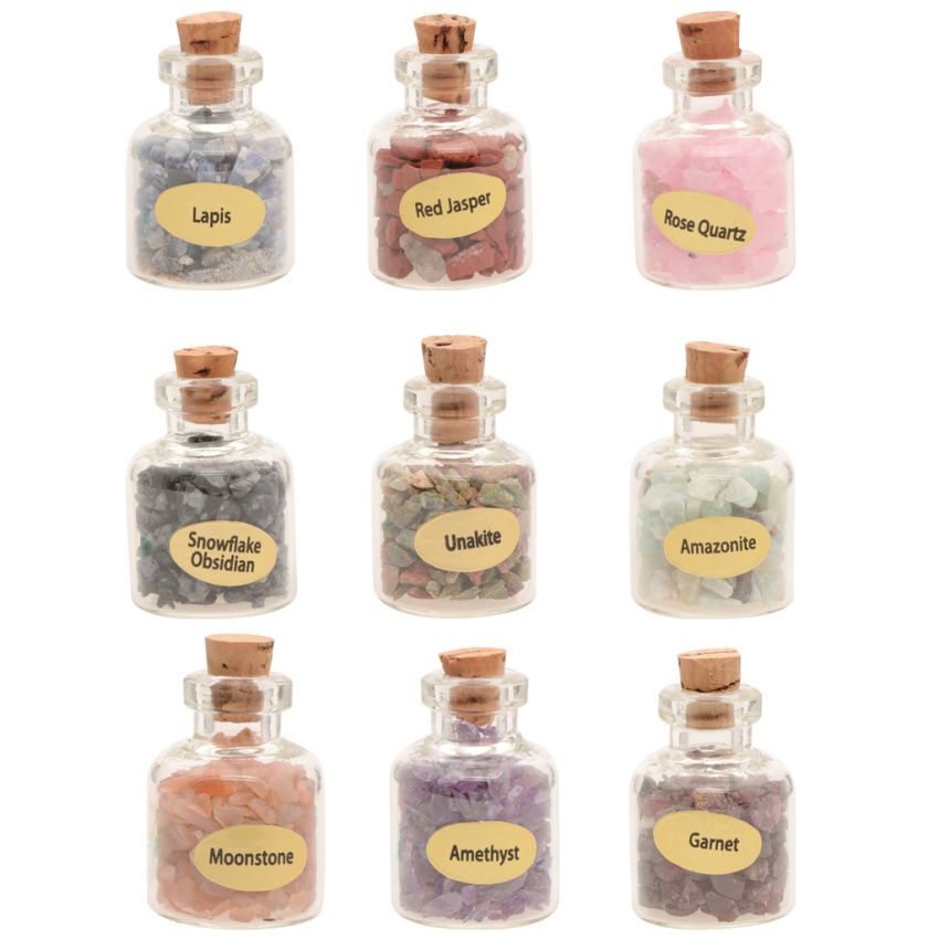 9 Gemstone Bottles Crystal Tumbled Gem Wicca Set for Home Decor