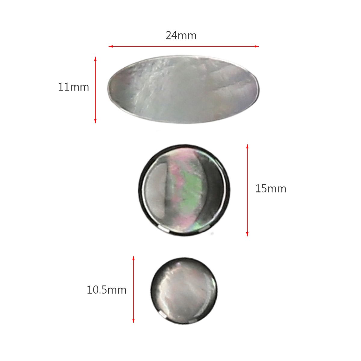 Contains one 10.5mm tiny round button, six 15mm medium round buttons, and two 24mm*11mm elliptic buttons.