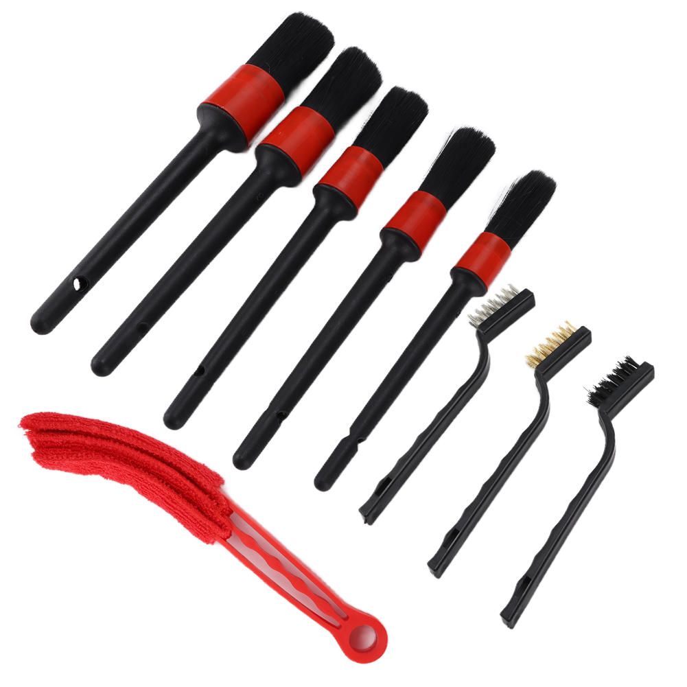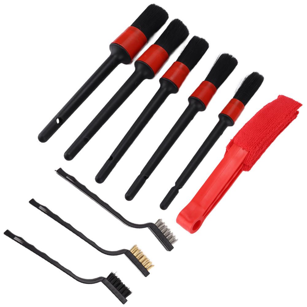 9pcs cleaning brushes with different size, which can meet various cleaning needs, can be used for car washing, waxing, cleaning and dust removal, etc.