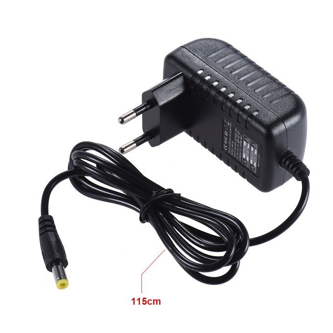 Output: 9V DC 1A, 2.1 x 5.5mm output connector.