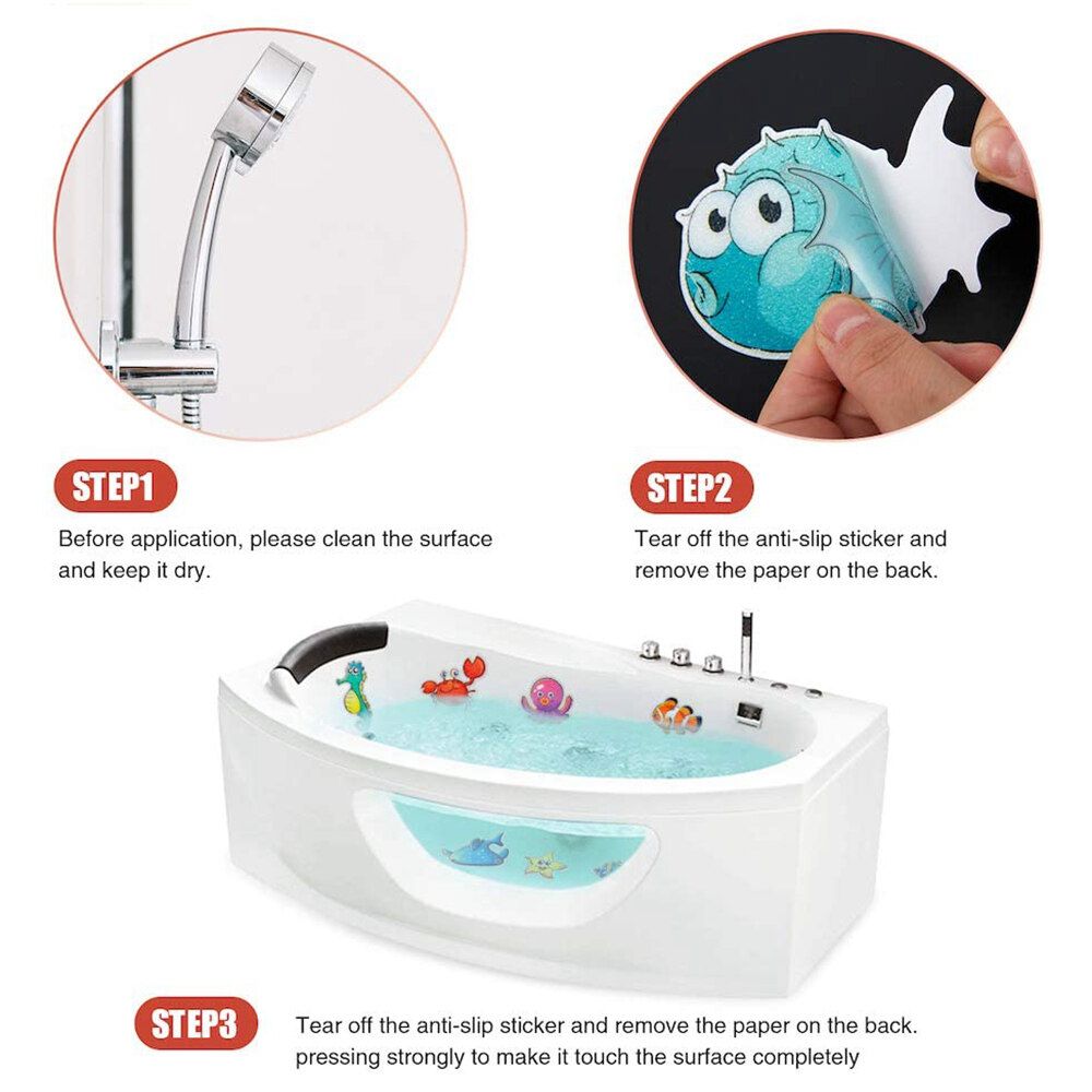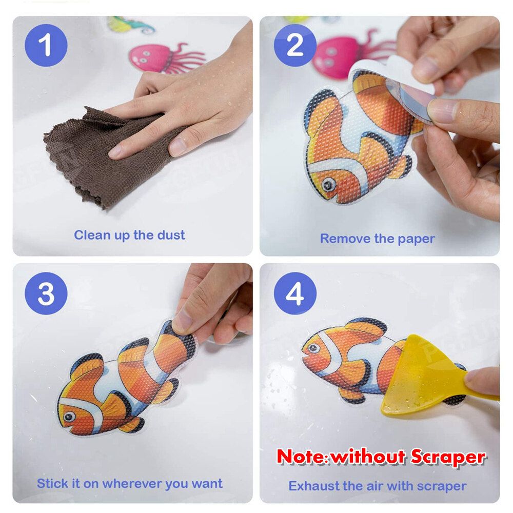 9PCS Anti Slip Stickers Cute Sea Creature Non Slip Stickers Tub Tattoos Bath Decals Adhesive Appliques for Bathtub,Shower and Slippery SurfacesNon-slip Surface:The non-slip effect of the bathtub sticker is the same as that of the tub mat. The surface is designed with a grainy (PEVA material), which greatly increases the friction and reduces the risk of accidental slipping. At the same time, this design can allow water to flow freely further reducing the chances of soapy water accumulating.Super Stickiness:Our anti slip sticker uses special , which can firmly adhere to the smooth surface, offering a strong adhesion and a great grip, and is not easy to fall off. At the same time, it can be easily removed without leaving any residue or damaging the interface.Easy to :The whole process takes 3 minutes. Before pasting, make sure that the surface to be pasted is smooth, dry, and without texture, then peel off the sticker from the backing paper, and then it to a specific position. (Note: After sticking, keep it free of water for 12 hour)Multiple patterns:Our shower stickers have been upgraded, not can be non-slip, but also has 9 different sizes and different patterns of tub tattoos, loved by children, can be used as children's toys,and also increase children's awareness of sea creature.Use widely:The sea creature decals not anti-slip, but also for decoration. It is suitable for any smooth, dry, non-textured surface, such as bathtubs, floors, stairs, doors, mirrors, windows, desks, walls, etc., to put you in the ocean world.Product informationName:Anti Slip StickersColor: shownTheme:Cute Sea CreatureQuantity:1 Set of 9PcsMaterial:PEVASize:4.25*4.25inch(Approximate size, slightly different according to different shapes)Pack Include:(without Scraper)1x Set of Anti Slip Stickers