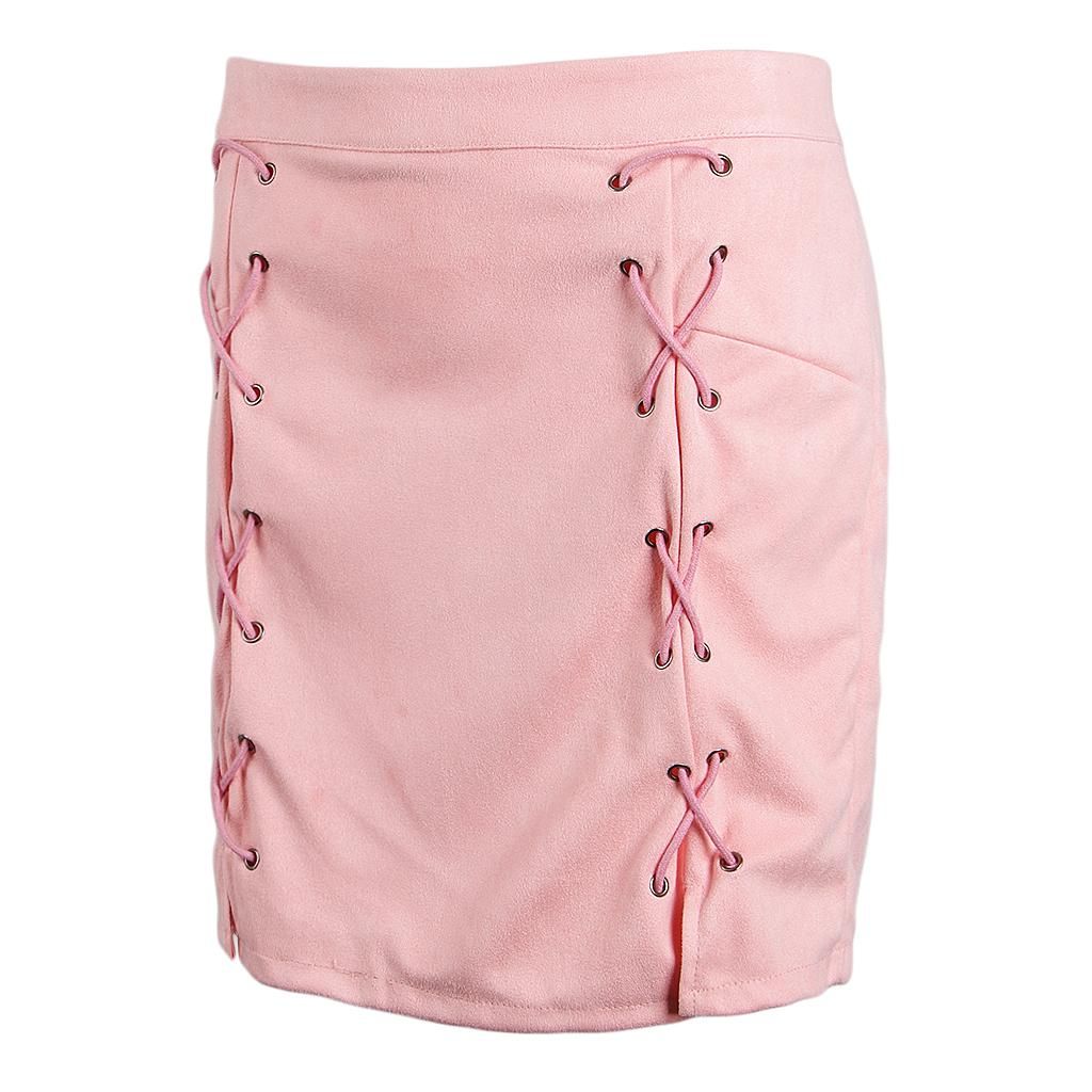 Features: slim mini skirt, lace up, high waist and bodycon