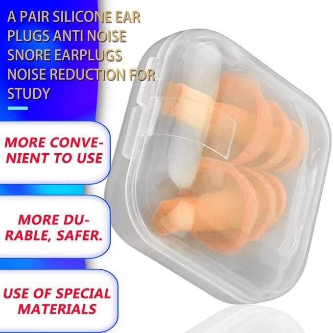 A Pair Silicone Ear Plugs Anti Noise Snore Earplugs Reduction For Study Orange