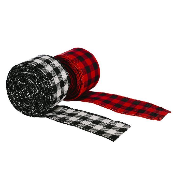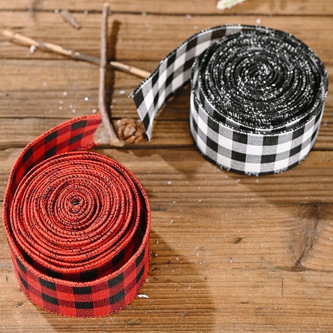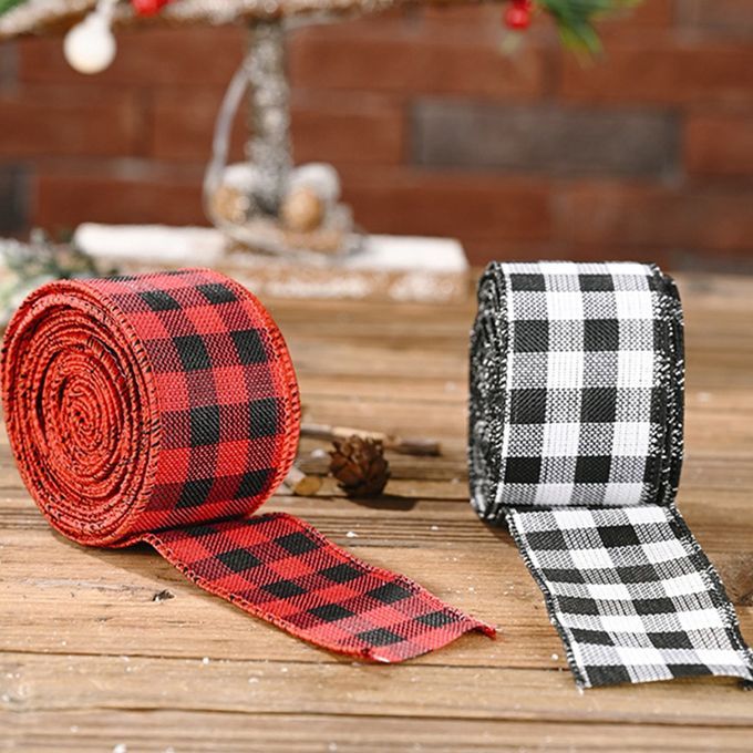 A Roll Of Hristmas De Oration Latti E Webbing Strap Latti E Ribbon Plaid Pattern Printed DIY Gift Wr Ing Party De Oration-bla K And White