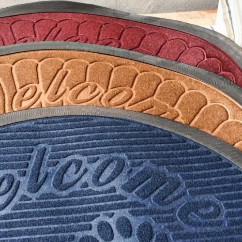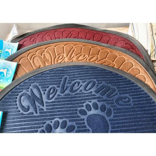 Set of three pieces mat made of 100% rubber base and rug top surface, it come in different color vvariations and in two sizes. but this displayed in the image above is the big size suitable for home , offices , restaurants , hotel and business`center.