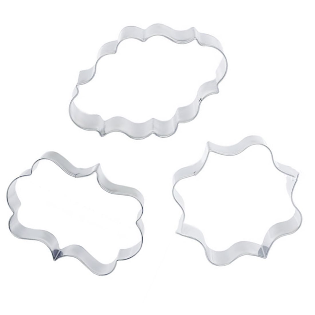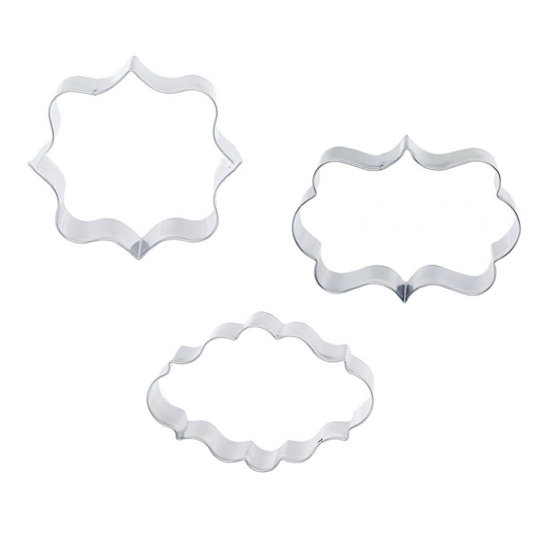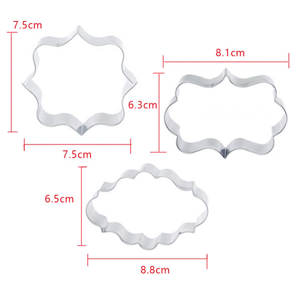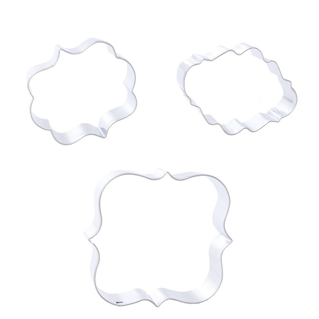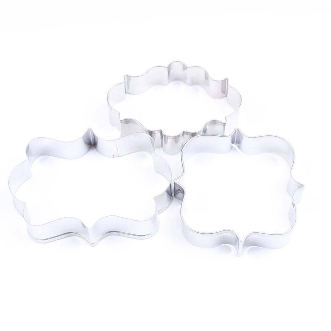 A Set of Cookie Stencils 3pcs Wedding Blessing Frame Shape Metal Stainless Steel Biscuit Cake Chocolate Mold Baking Tools