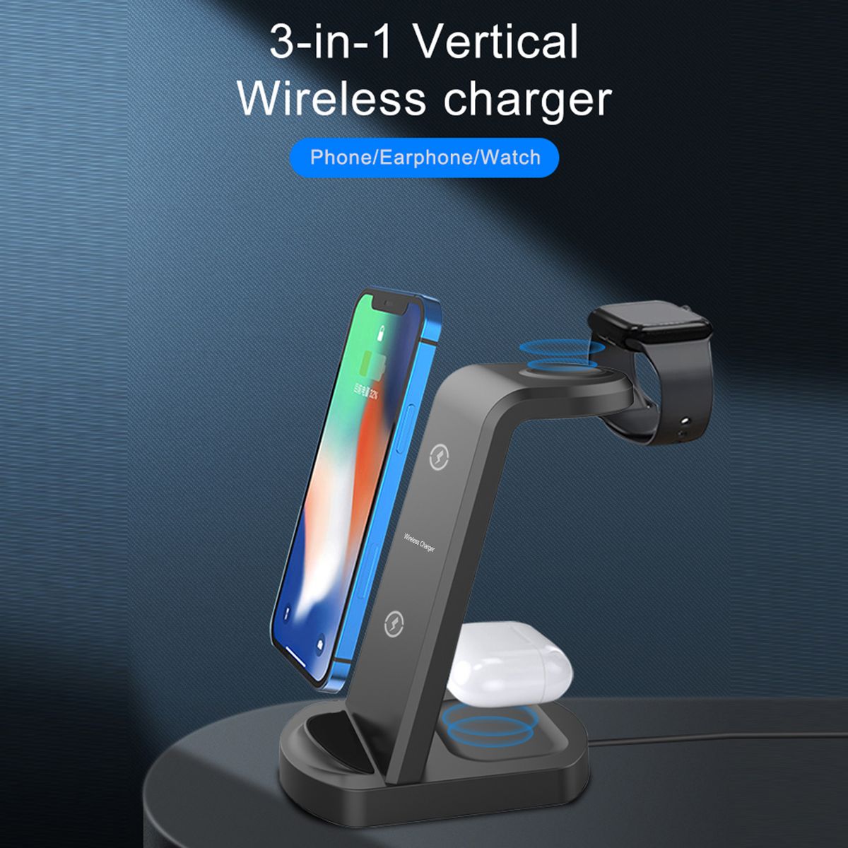 * This 3 in 1 wireless charging station can charge three devices simultaneously including smartphone, smartwatch and wireless earbuds, effectively improving your charging efficiency.