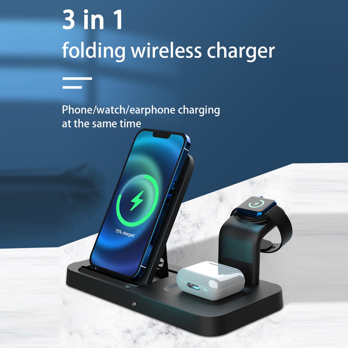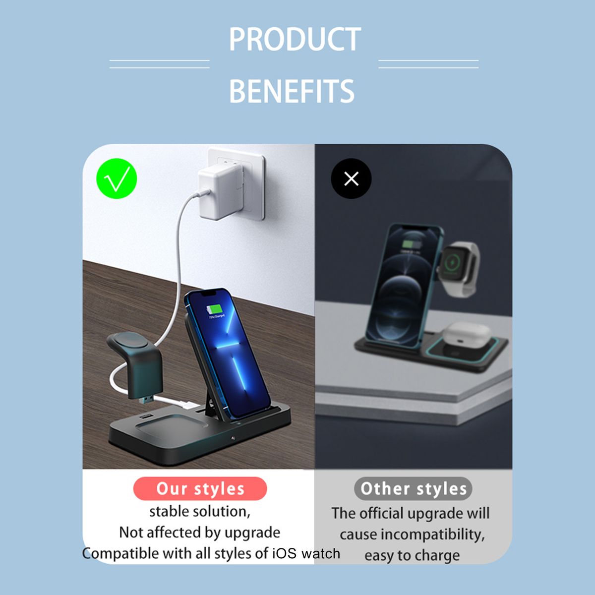 * This 3 in 1 wireless charging station can charge three devices simultaneously including smartphone, smartwatch and wireless earbuds, effectively improving your charging efficiency.