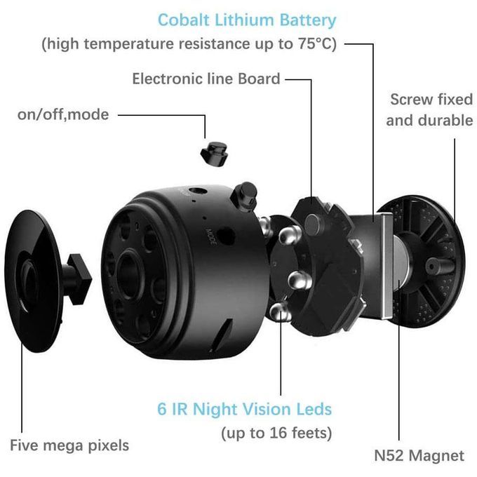 3、This small camera bathroom has a built-in magnet, can work well with any iron material, easily place anywhere. This small camera with a rigid charging cable and magic base, when charging while recording, you can manually rotate the recording angle 360 degrees.