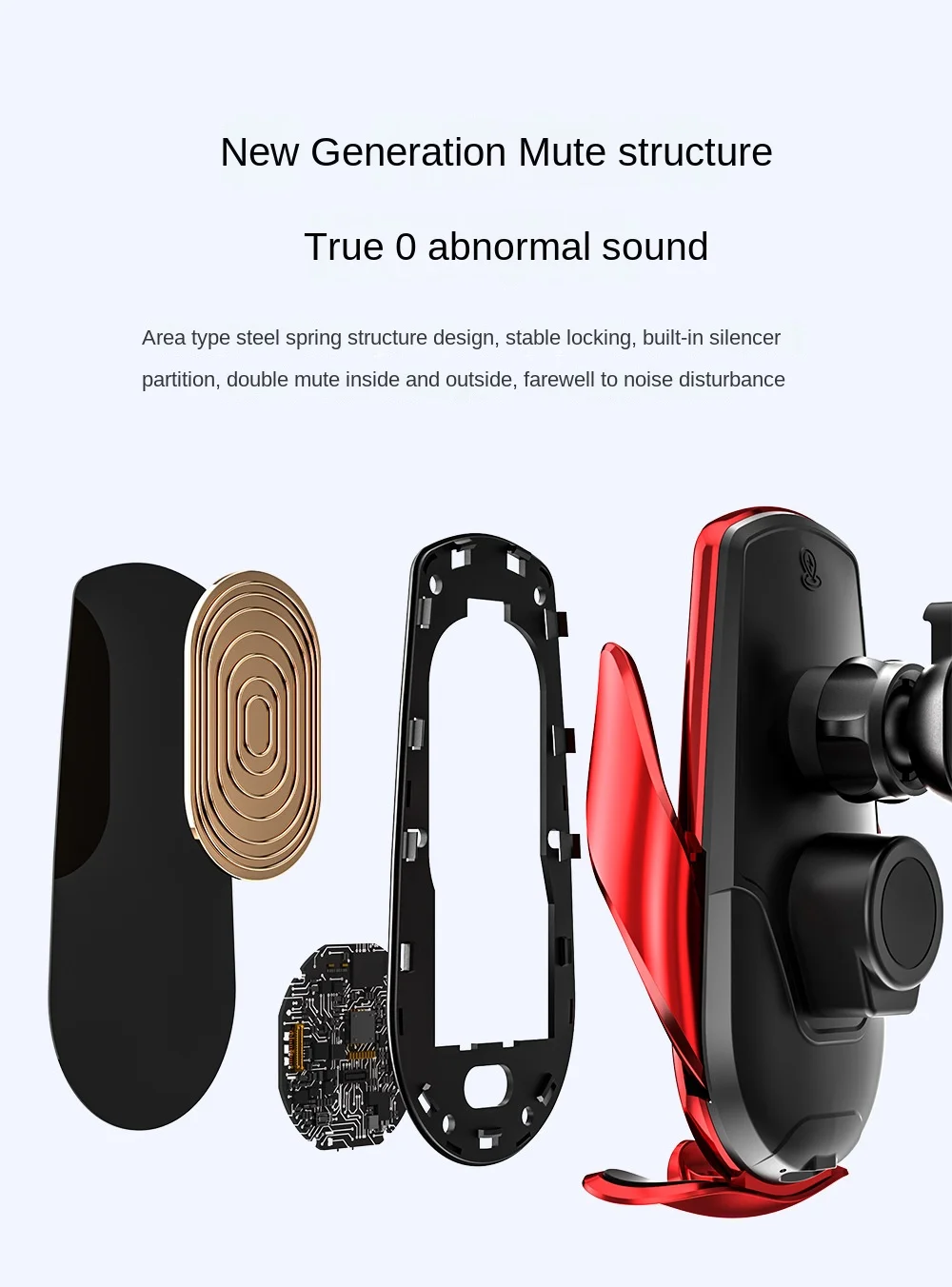 High-Quality Design the DENT Qi Wireless Car Charger is an auto-clamping high-tech design. High-quality gold trim with a black mirror finish and durable rubber cushions.Automatic Wireless Charger Car MountAir vent mount with 360 & deg;ball joint pivot, universal wireless charging phone holder. One-hand operation. The smart sensor will open the two clips and will automatically close and grip your phone; to release the phone, touch the back of the shell at the sensing point and the clips will automatically open.Intelligent Qi-certificated Wireless ChargingCompatible with Qi-Enabled Phones. The charger will intelligently identify wireless fast charging devices and smartly adjust power to 5W, 7.5W or 10W. Fast Charging 10W (Max). Support 9V/1.67A quick charge and 5V/2A standard charge.