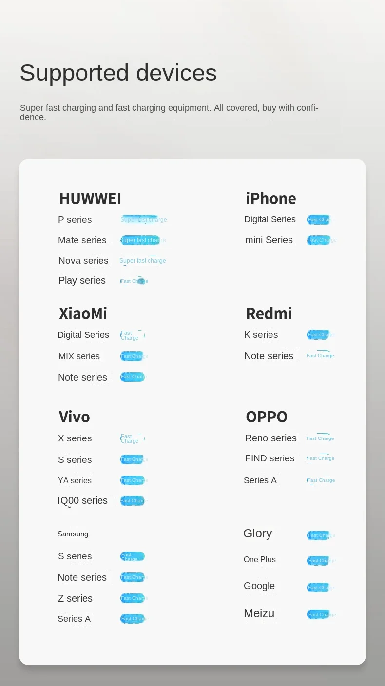 & bull; Support fast charging protocol like Samsung; PD and QC3.0. Suitable to phones: