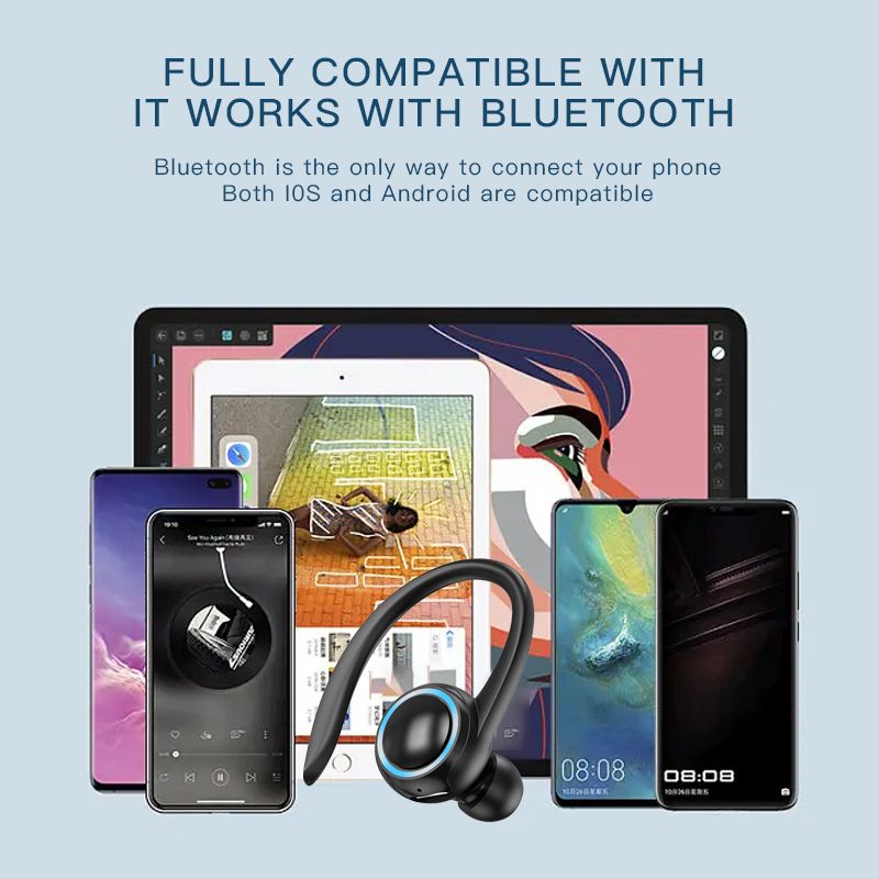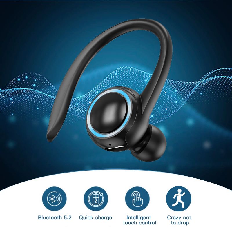 A1s Waterproof Hanging Single Ear Earbuds Bluetooth 5.2 Noise Cancelling Sports Wireless Business Headphones Headset With LED