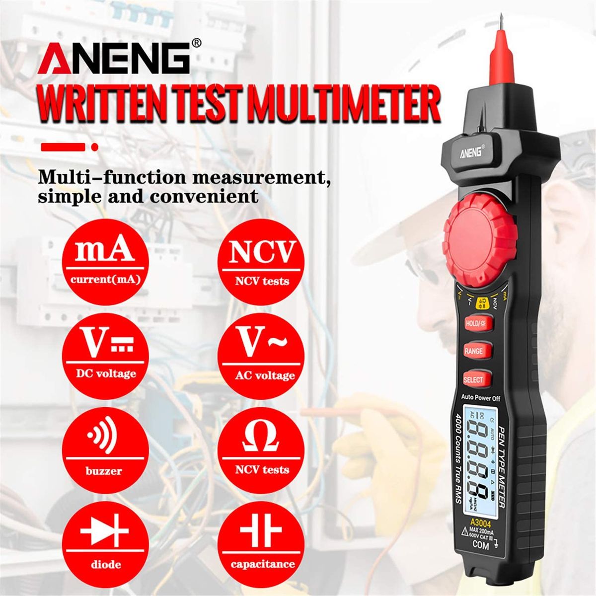 Multifunctional Pen Meter -- This automatic pen meter measures 4v ~ 600v AC/DC voltage, 40ma ~ 200ma AC /dc current measurement,400ω- ~ 40m ω- resistance, capacity measurement diode and on-off buzzer, zero fire detection, and more