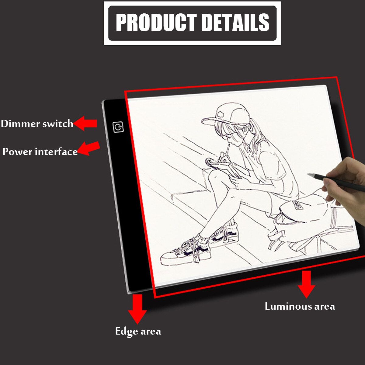 -Stepless Dimming: Continuously adjust the brightness of 0-4500Lux, you can adjust the appropriate brightness as needed. The led drawing tablet has a smart memory function. If you turn off the LED drawing (do not turn off the ) and turn it on again, it will show the brightness you used last time, very convenient!