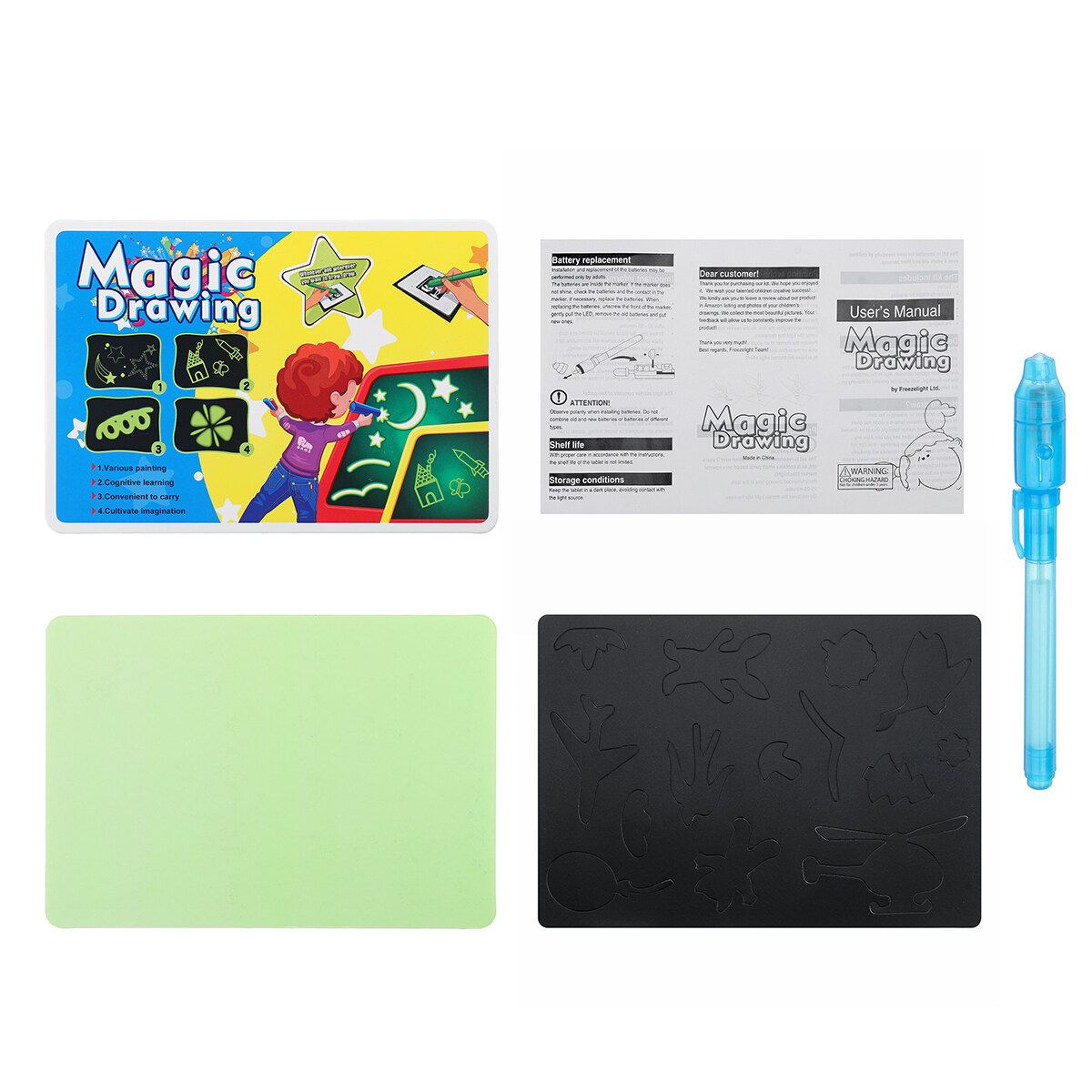 1* tablet with a light-accumulating covering 1* Luminous pen for drawing 1* Black copy card 1* instruction