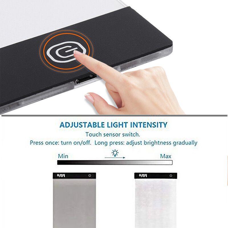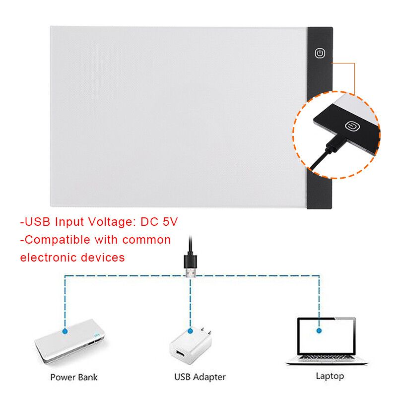 5. SIMPLE OPERATION- The Light Pad doesn't need to install any software, you just need to insert the plug we enclosed, turn it on then you can start your creative work.