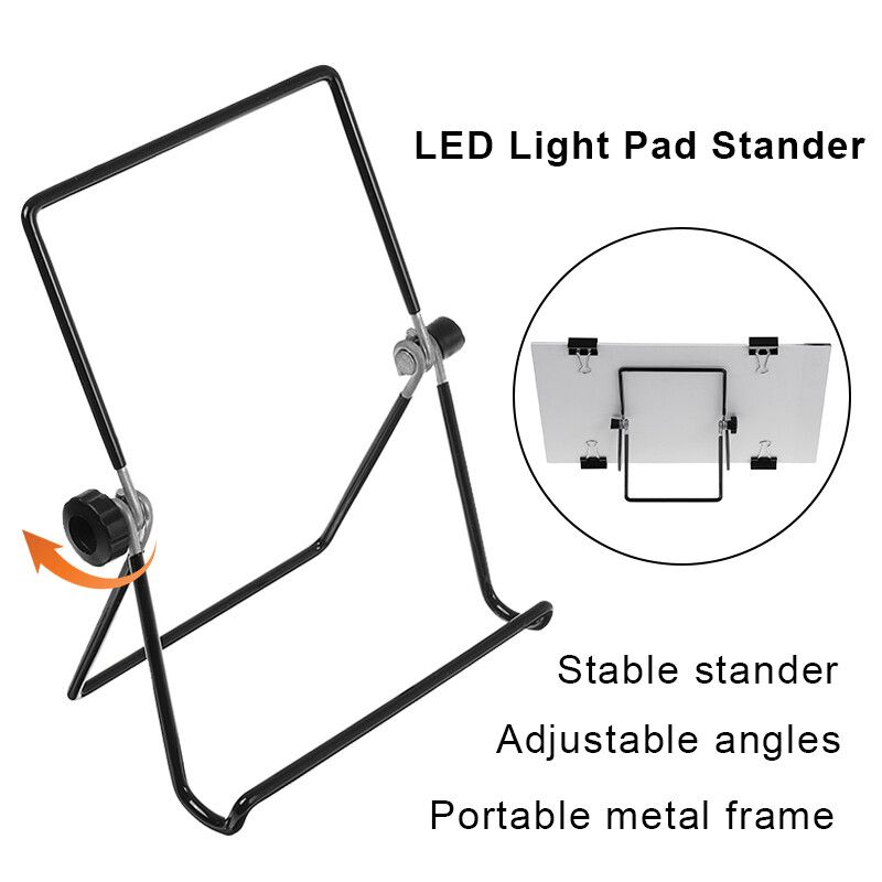 3. LIGHT PAD STAND CLIPS- 4pcs clips can fasten canvas/paper/X-Ray or something firmly. And the adjustable angles detachable metal frame, not can hold and protect the pad perfectly, but also can provide you with the best viewing angle
