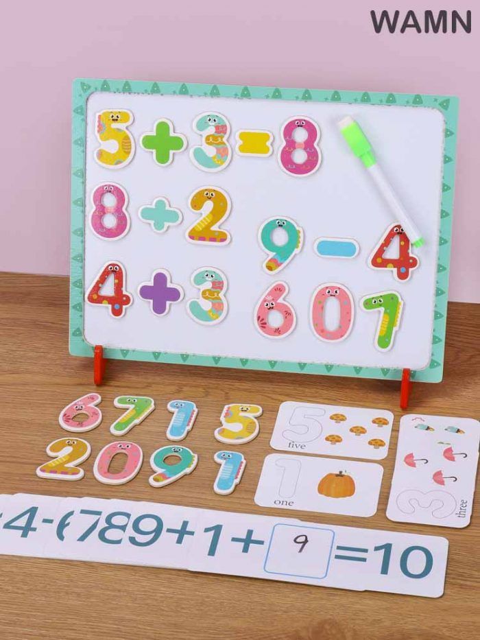 Wooden Magnetic Learning Educational Board Colorful Tray Numbers develops habit of identifying Numbers their corresponding objects while they develop motor skill Promotes hand-eye coordination, fine motor skills, and problem-solving skills.Number recognition, visual senses, and phonetic awareness , kindergartners to recognize Numbers.Contents : Wooden magnetic base board-1, numbers, cards, stand-2, pen-1.