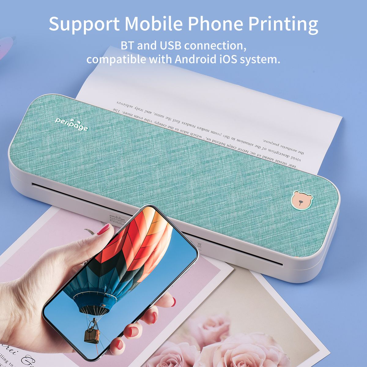【Premium Printing Quality】 A40 printer equipped with high quality print head, which has over 50km print life and printing about 168000 A4 Paper. Adopt advanced thermal printing technology, no ink cartridges or consumables are required, energy saving and environmental friendly. (Recommended to buy PeriPage thermal paper together for clearer printing, not compatible with plain paper)