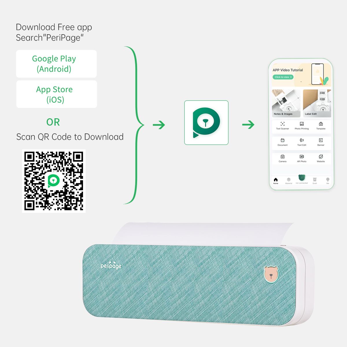 【All in One Printer】 PeriPage A40 mobile printer, ideal for printing PDF file, test paper, webpage, contract, photo, picture, etc. Long standby time and with app which has a variety of materials and typography, easy to set up and print, an excellent assistant for study and office work.