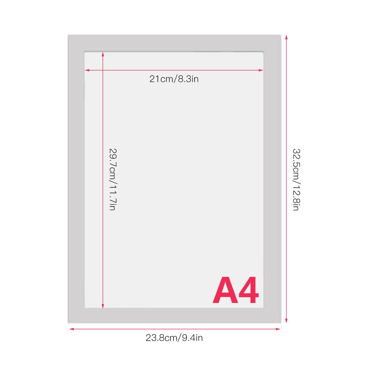 A4: 32.5 * 23.8cm/ 12.8 * 9.4in