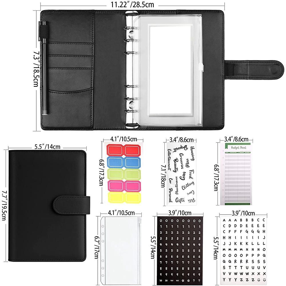 Easy to Carry:The A6 binder budget notebook size is 19 x 13 cm / 7.5 x 5 in, the binder pocket is about 18 x 10.8cm / 7 x 4.3 in, the budget sheet 17 x 8.6 cm / 6.8 x 3.4 in, Binder Cover suitable for entering and exiting schools, offices, conferences, travel, and other scenarios.All items are lightweight and handy for carrying and daily recording.